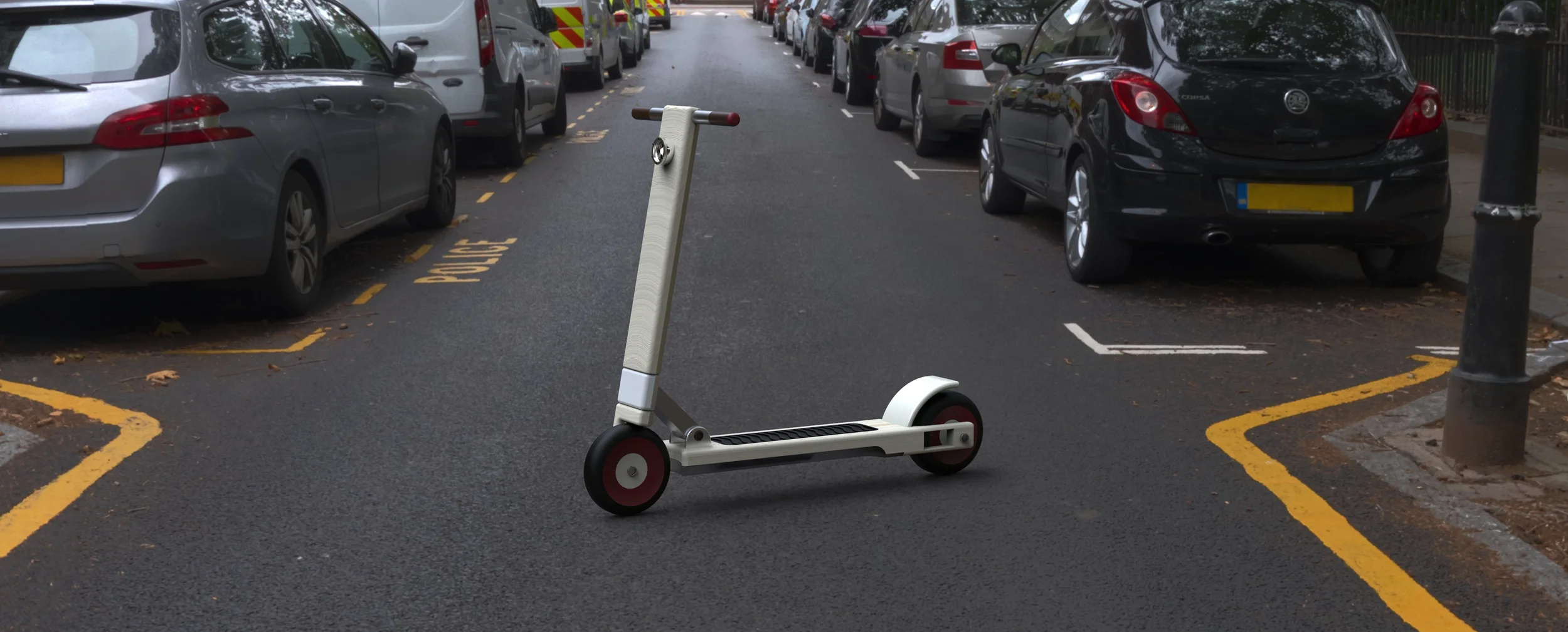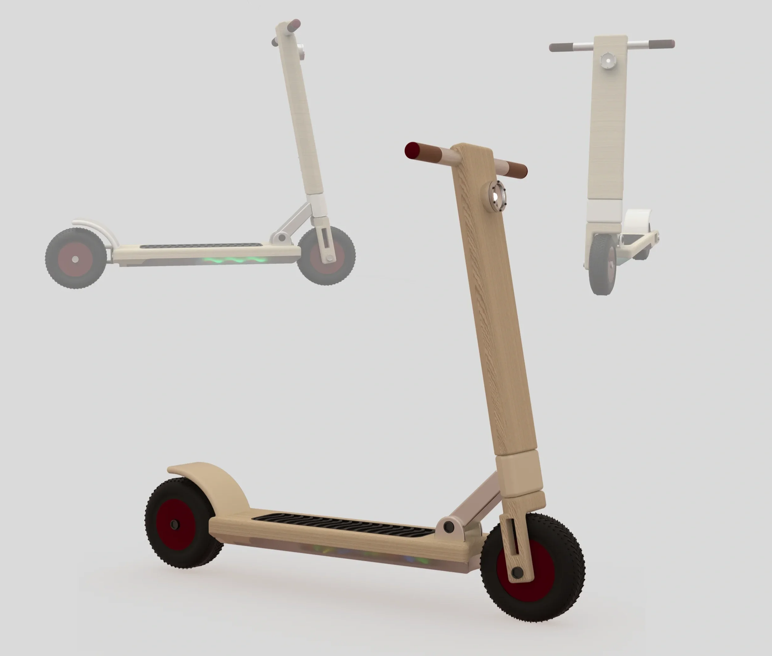 I modeled the scooter in Fusion 360 and rendered it in KeyShot, making choices that highlighted function and everyday usability.