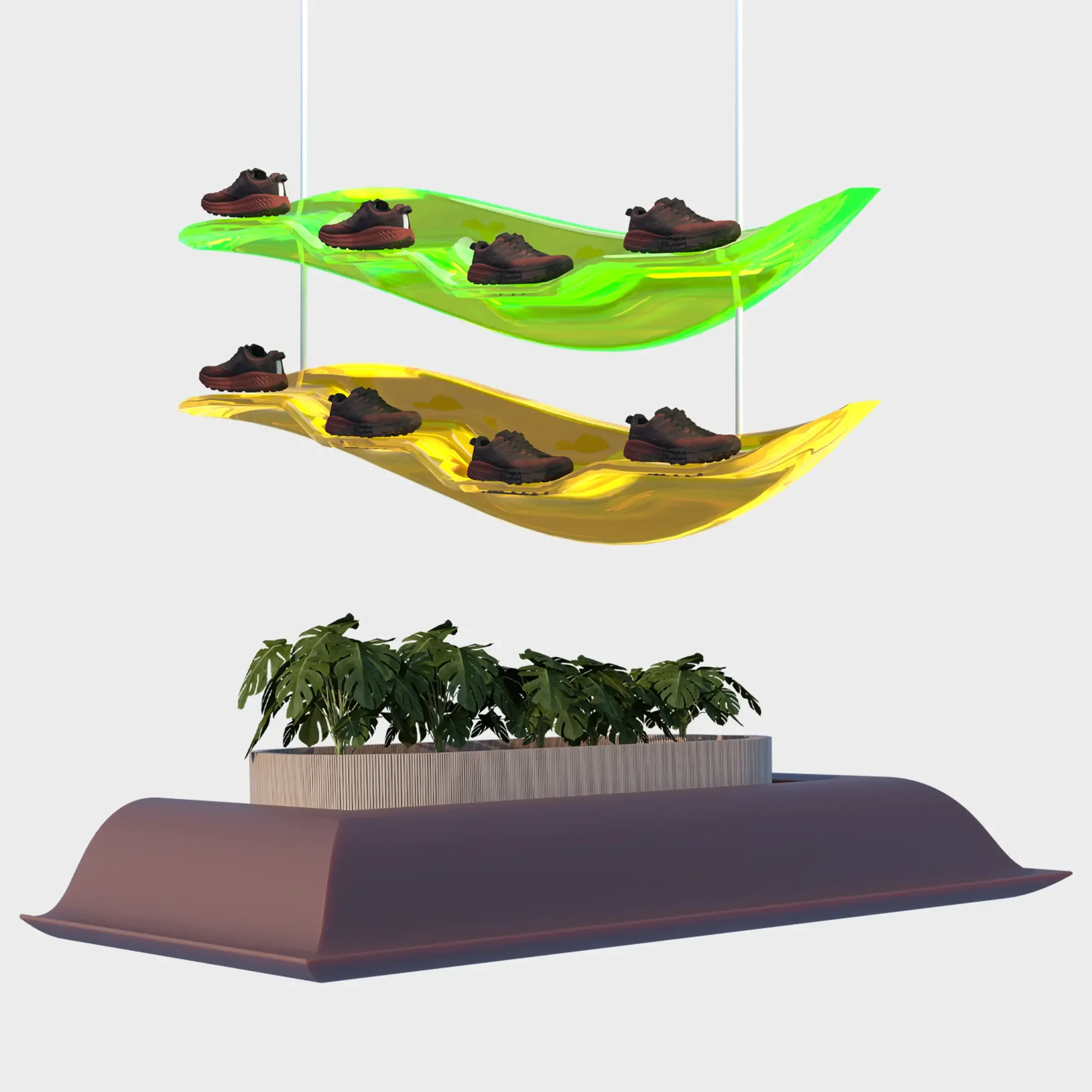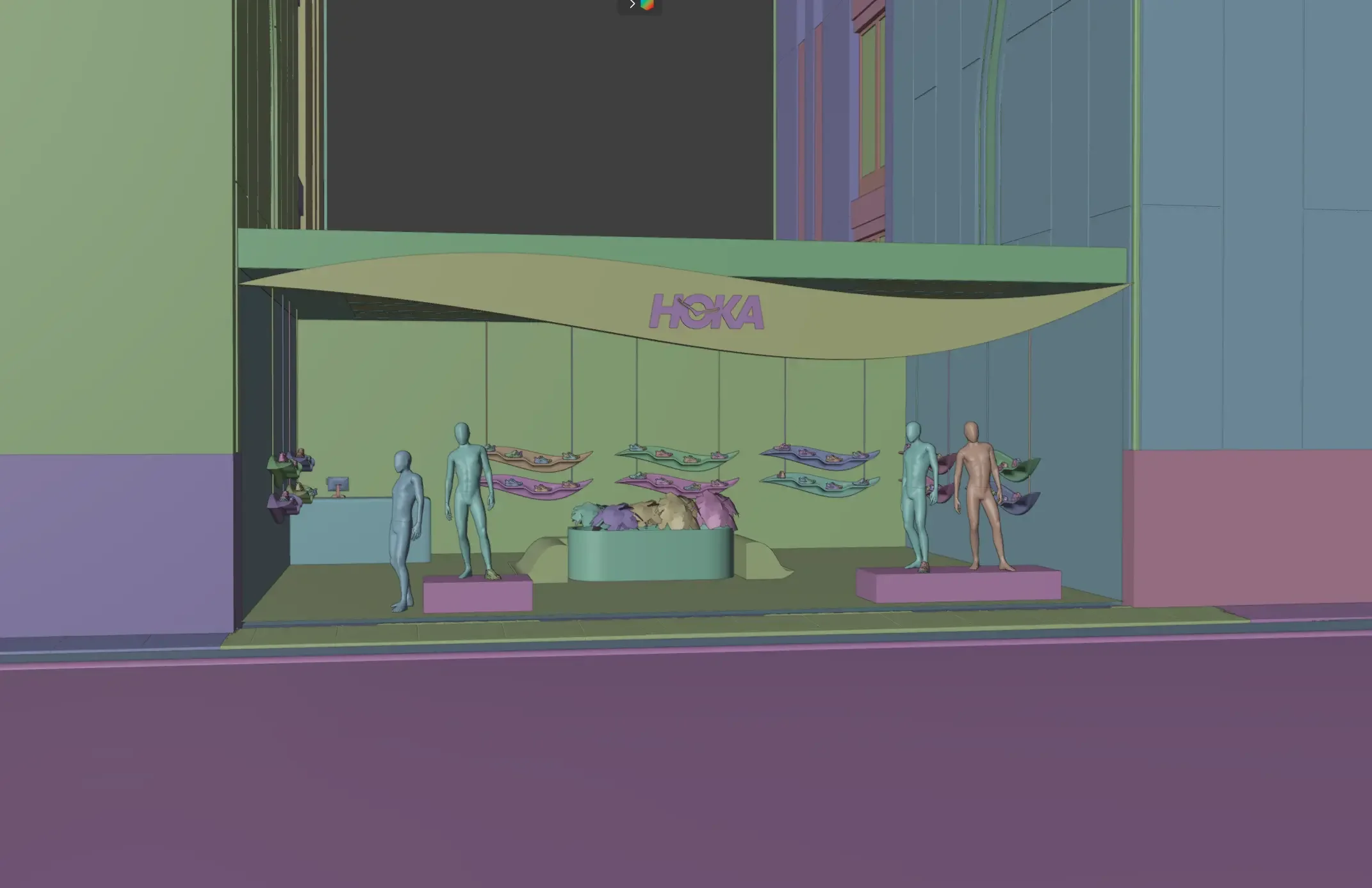 A retail concept built from HOKA’s iconic swoosh form