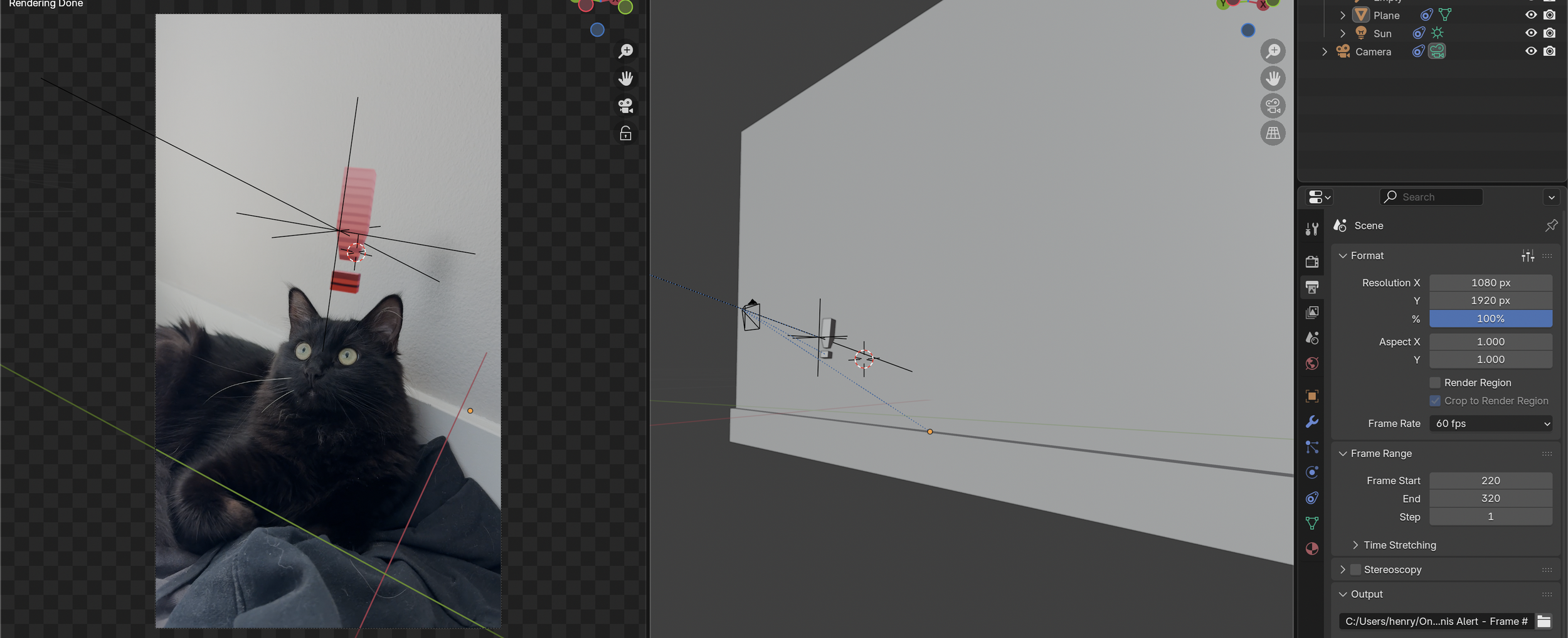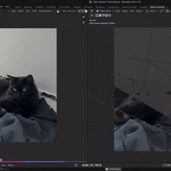 Blender handled camera tracking and animation, aligning the mark with the footage frame by frame.